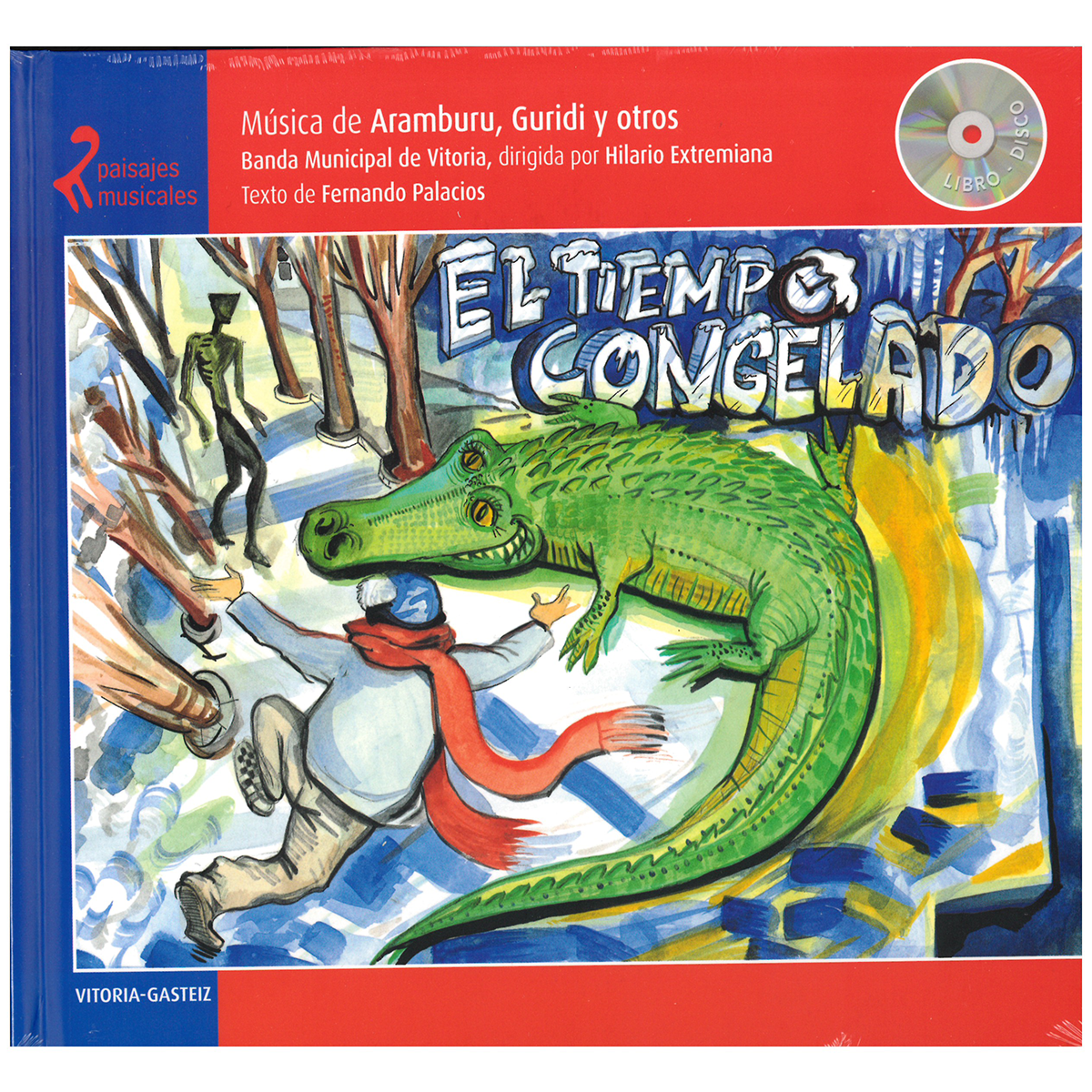 El tiempo congelado, es el segundo libro-disco de esta colección. Con él, Fernando Palacios nos invita a dar un paseo por Vitoria acompañados por la música de Luis Aramburu y Jesús Guridi, entre otros. Con audiciones como “10 melodías vascas” vivenciamos anécdotas divertidas que transcurren en diferentes partes de la ciudad.